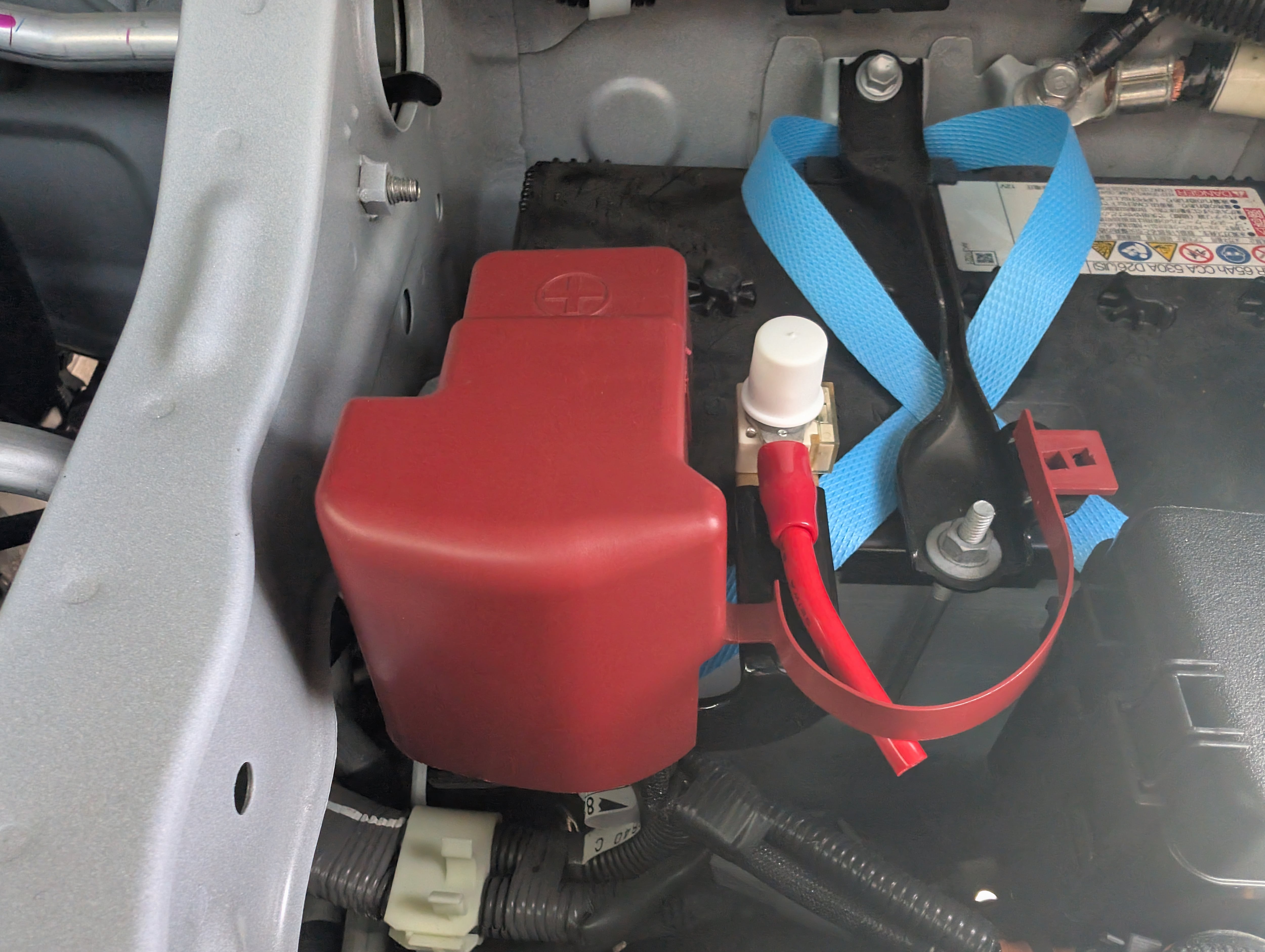 純正のプラ絶縁カバーを加工せずに電源を取り出せます。